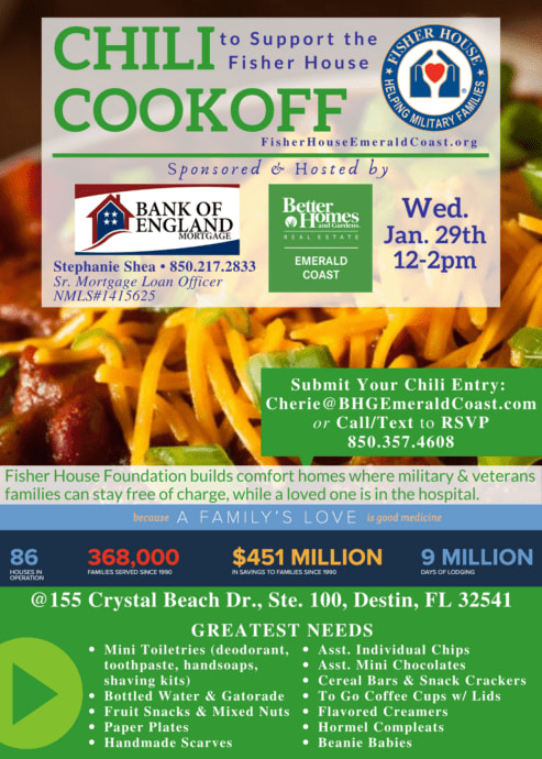 Who will win ‘Top Chili Chef’ at the 5th Annual Chili Cook-off and Fisher House of the Emerald Coast Charity Event?
